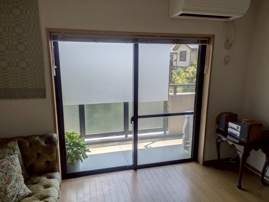 寝室のベランダへ出る引き違い掃き出し窓も、既存のアルミサッシ一枚ガラスで断熱性が低い状態でした。就寝時に窓からの冷気がベッド周りに流れ込み、布団をかぶっていても寒さで目が覚めてしまうことがありました。朝方には窓全体が結露でびっしょり濡れ、カーテンにもカビが生えやすい環境でした。冬場は暖房をつけっぱなしにしても窓際が冷えるため、快適な睡眠環境が保てませんでした。健康的な睡眠のためにも、寝室の断熱改善は重要な課題でした。