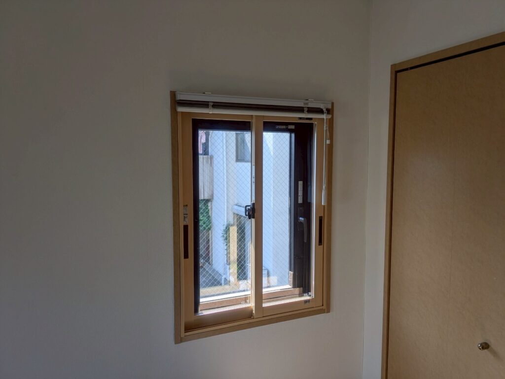 寝室の腰高窓は、ベランダへの掃き出し窓と同じく既存のアルミサッシで、断熱性が不十分でした。窓の下の壁面にベッドやチェストを配置していましたが、窓からの冷気で家具周辺がひんやりとしていました。小さな窓ながらも結露が発生し、サッシ枠にカビが生えやすい状態でした。掃き出し窓だけでなく、この腰高窓からも冷気が入り込むため、寝室全体の保温効果を高めるには全ての窓への対策が必要でした。小窓とはいえ、快適性への影響は無視できませんでした。
