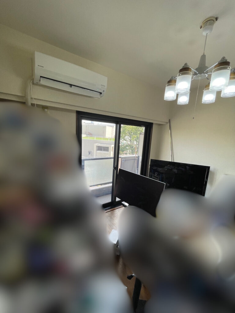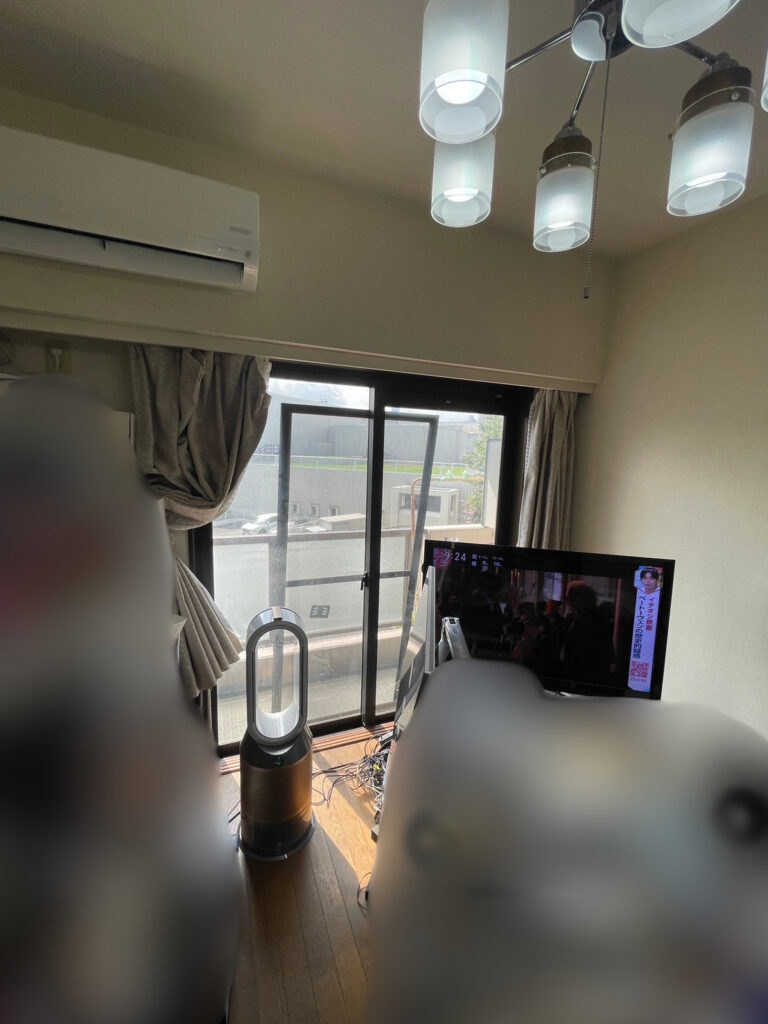 リビングのベランダにつながる掃き出し窓は開口部が大きく、日差しを取り込みやすい反面、外気や外の音の影響を受けやすい状態でした。お部屋にはテレビやデスクまわりの機器が置かれており、在宅時間が長いからこそ、窓際の暑さ寒さのムラや音の入り方が気になりやすい環境です。特に交通音や生活音が重なる時間帯は、テレビの音量を上げてしまうことがあり、落ち着いて過ごしにくいことがお悩みでした。大きな窓は便利ですが、そのぶん室内の快適性に与える影響も大きく、毎日の小さなストレスが積み重なりやすい場所でもあります。