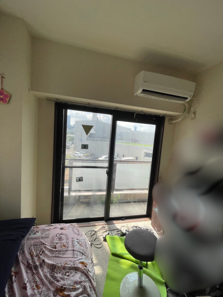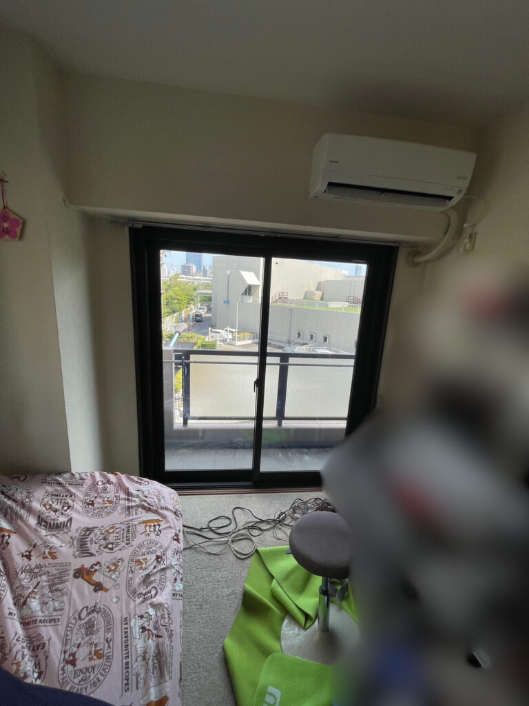寝室のベランダ側にある掃き出し窓も、リビング同様に大きな開口部のため、外気の影響を受けやすい状態でした。寝室は本来ゆっくり休むための空間ですが、窓際から伝わる音や温度変化があると、思っている以上に眠りの質に影響してしまいます。お客様は、夜は気にならなくても早朝になると外の気配で目が覚めやすいこと、また冷暖房をつけていてもベッドまわりの体感が安定しにくいことに悩まれていました。寝室の快適さは寝具や空調だけでなく、実は窓の性能が大きく関わっています。