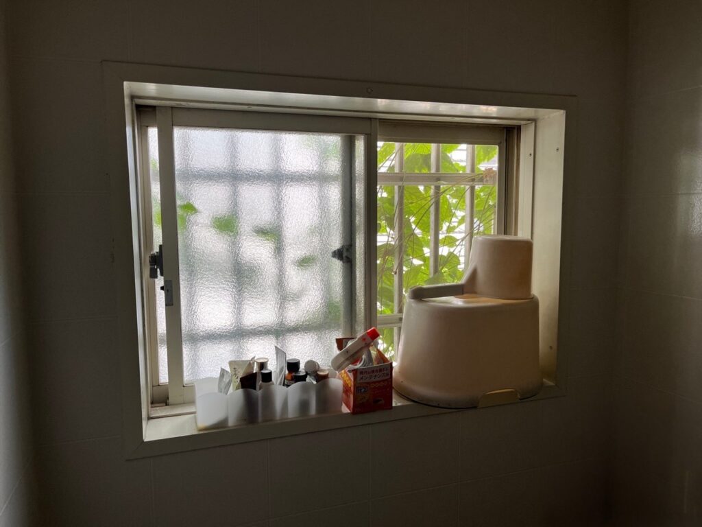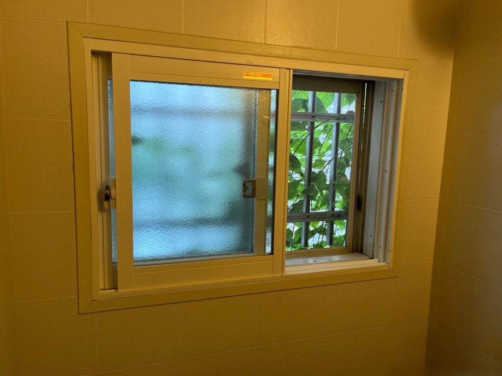 洗面台前の窓は、朝の身支度や手洗いのたびに使う場所だからこそ、快適性の差が出やすい窓でした。洗面所はお湯や水を使うことで湿気がこもりやすく、窓まわりとの温度差から結露が発生しやすい環境です。しかも、朝の忙しい時間帯に結露の拭き取りが増えると、ほんの少しの手間でも毎日の負担として積み重なっていきます。水まわり特有のひんやり感も感じやすく、季節によっては洗面所に入った瞬間の不快感につながりやすい場所でした。日常の使用頻度が高いからこそ、窓の断熱性能を見直す価値が大きいことがわかる施工前です。