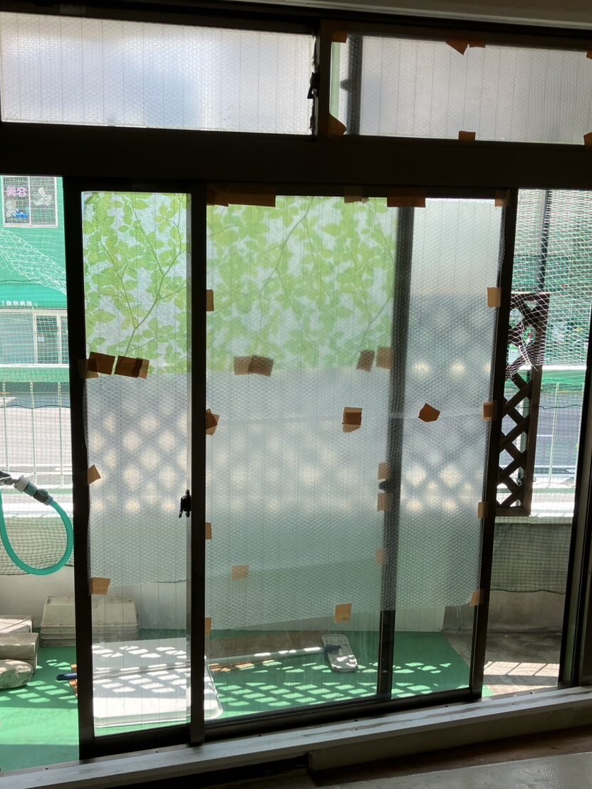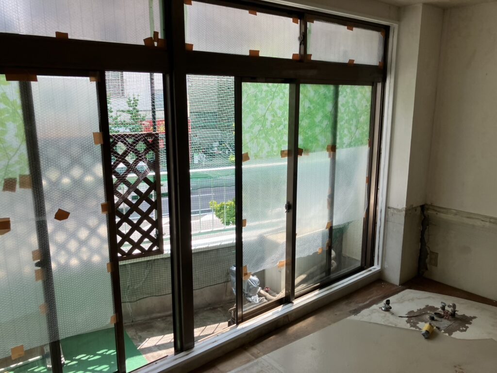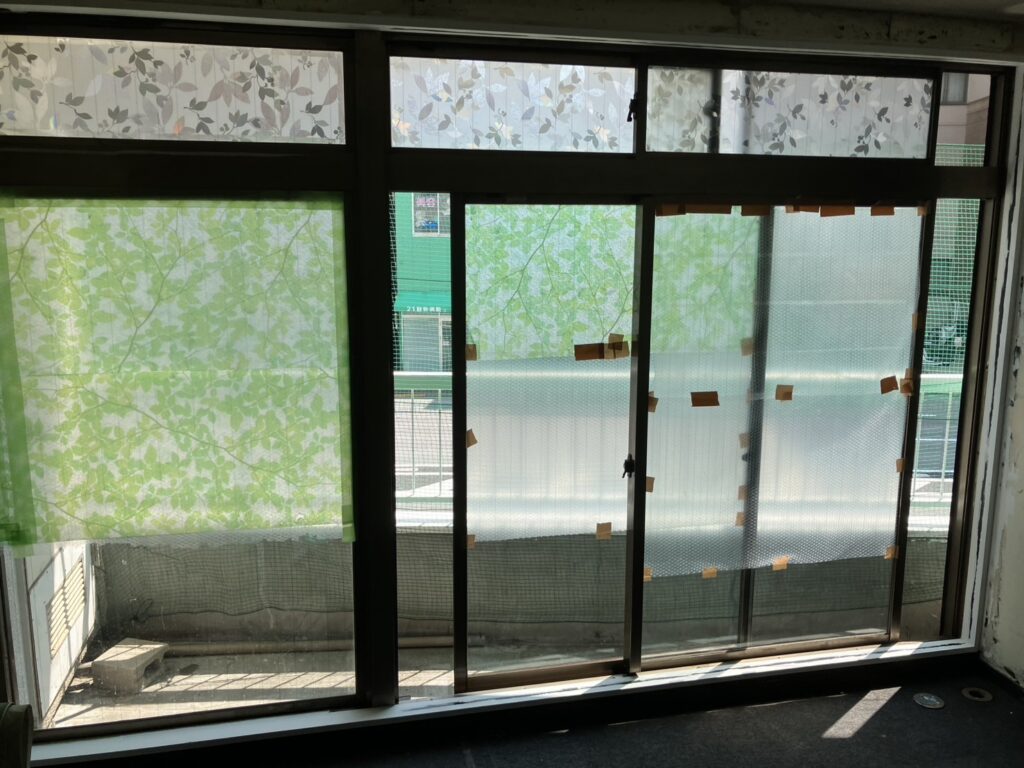 目の前に非常階段が設置されている腰高窓。階段の昇降音や人の気配がダイレクトに伝わり、常に外部の動きを意識せざるを得ない窓でした。非常階段からの音が入ってくるので、こちらの音も漏れているのでは・・・不安になり、プライバシーの確保が大きな課題となっていました。また単板ガラスのため断熱性も低く、非常階段の金属構造が冷えることで窓周辺の冷え込みも顕著でした。