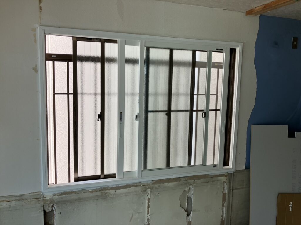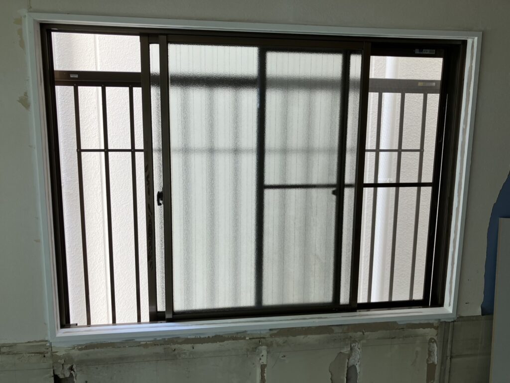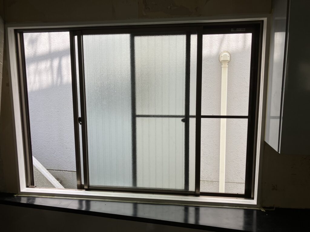 目の前に隣家の壁が迫る、格子付きの腰高窓。採光は望めない位置関係でありながら、格子越しに外部からの視線を感じてしまう中途半端な窓でした。既存の単板ガラスは断熱性能が低く、窓枠周辺からの冷気侵入や結露の後も見られました。格子があることで防犯性は確保されているものの、開放感はなく、冬場は窓際の冷え込みが特に厳しい場所となっていました。壁が近いため風通しもあまり期待できず、窓としての機能を十分に果たせていない状態でした。