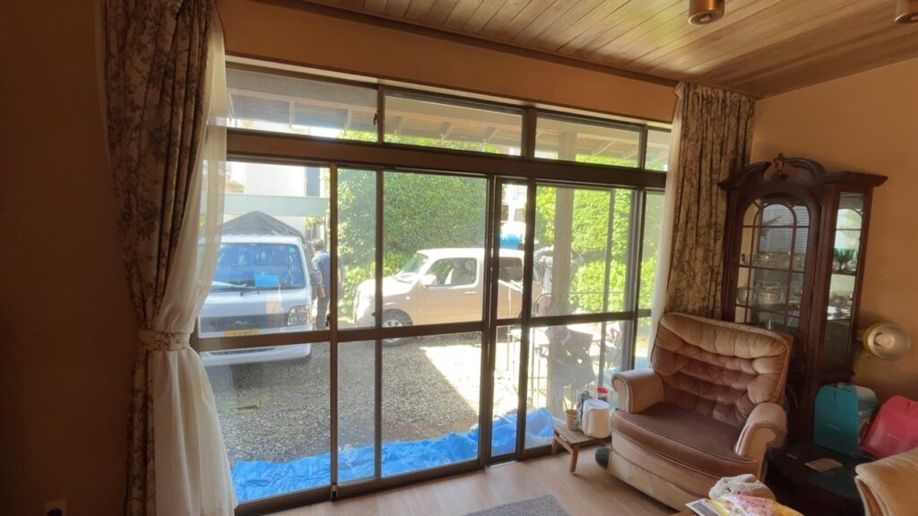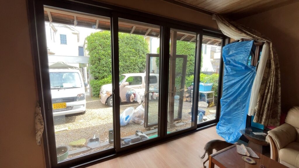 築35年の既存アルミサッシ単層ガラスのテラス戸は、冬場に窓周辺で体感温度が5度以上低下するコールドドラフト現象が発生していました。厚手のカーテンで対策していましたが、光を取り入れたい日中は寒さを我慢するしかない状況でした。アルミフレームからの熱橋効果により、暖房効率が悪く光熱費も高額になっていました。結露も頻繁に発生し、窓際の床が濡れることもありました。家族が集まるリビングなのに、窓際に近づくのを避けがちになっていました。