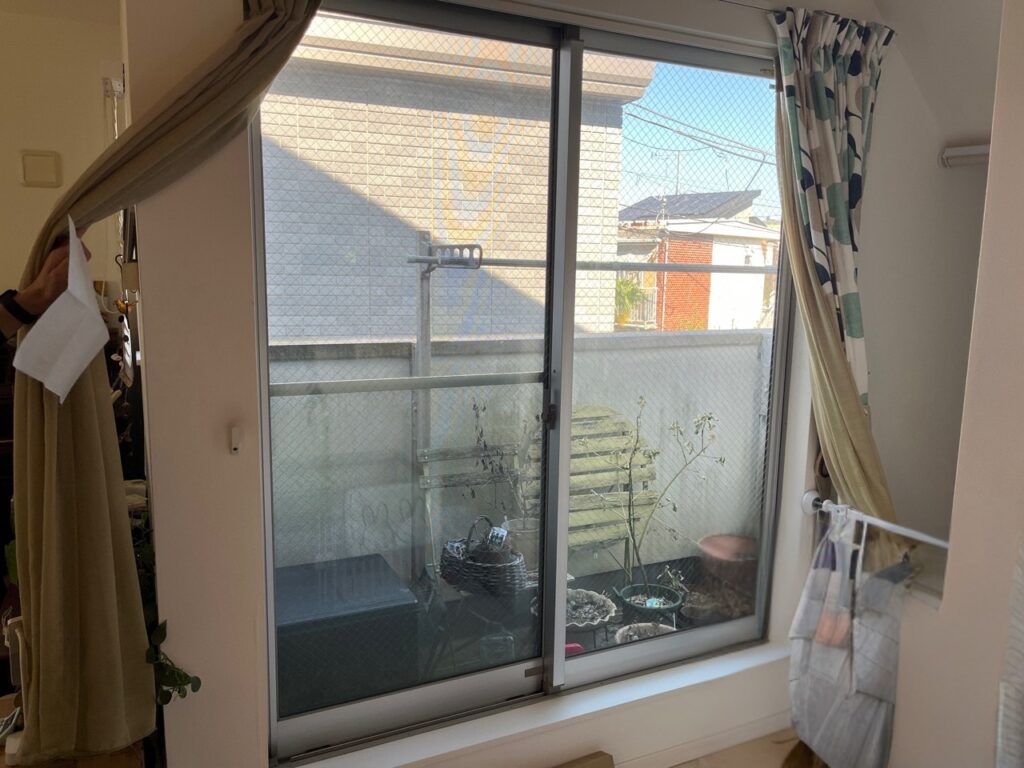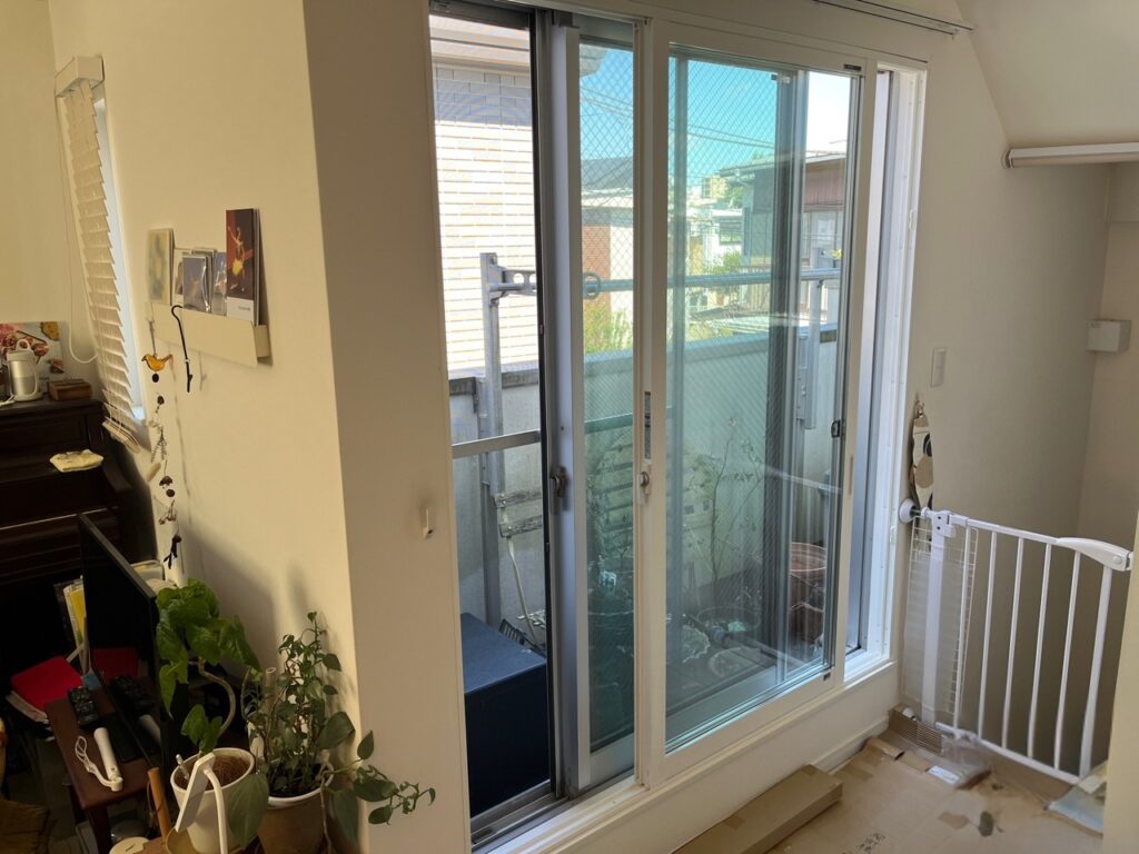 2階リビングの掃き出し窓は、ベランダに出入りする大きな開口部のため、家の中でも特に熱の出入りが大きい窓でした。日中は明るく開放的な反面、夏の暑さや冬の冷えが室内に伝わりやすく、冷暖房の効きにムラが出やすい状態でした。さらに大きな窓は音の出入り口にもなりやすく、外の生活音や風の影響を受けることで、くつろぐ時間に落ち着かなさを感じることもあったそうです。リビングは家族が最も長く過ごす場所なので、窓の性能が暮らし全体の快適性を左右します。そこで今回の施工では、採光性を保ちながら、断熱・防音・結露対策をしっかり行える内窓設置をご提案しました。